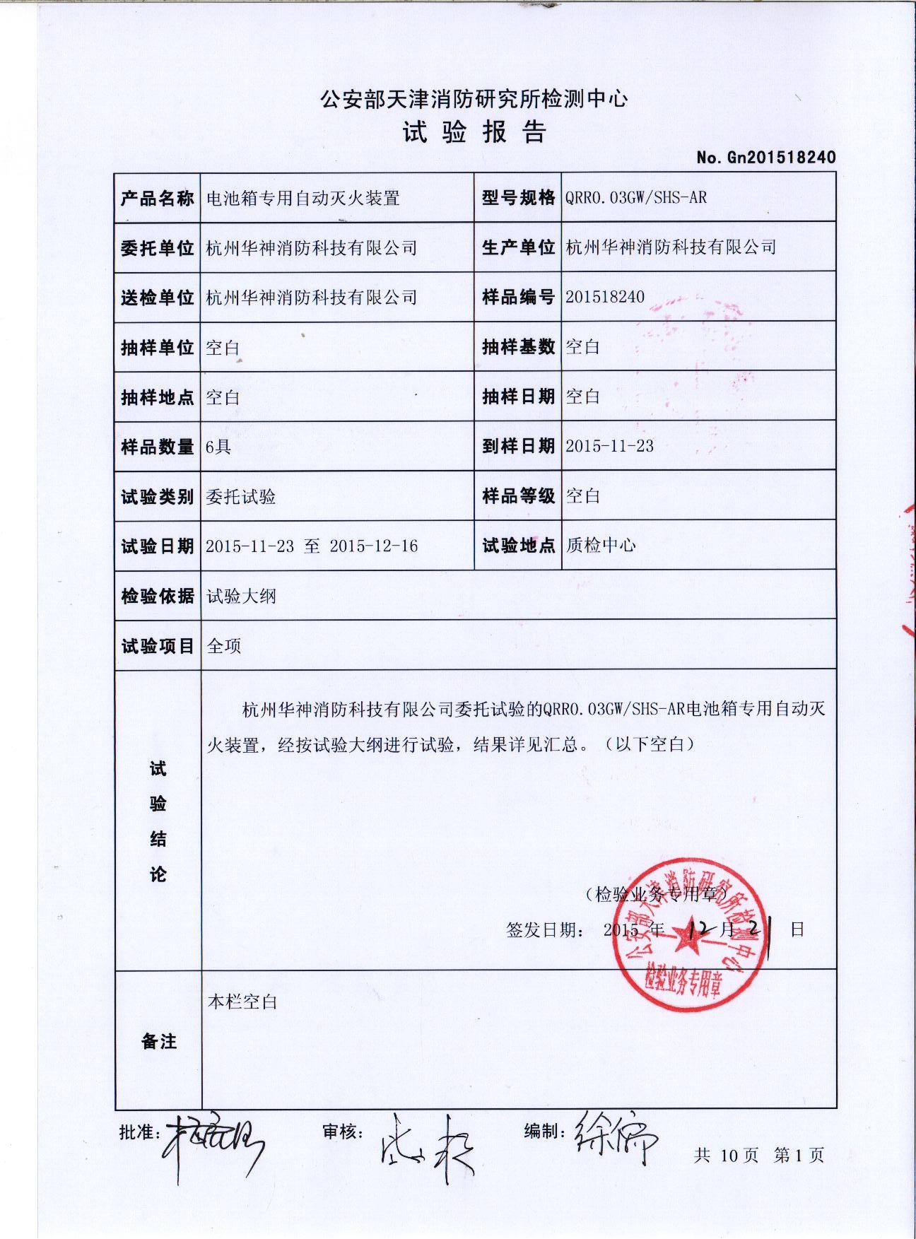 此項(xiàng)試驗(yàn)報(bào)告的取得,是“恒神”電池箱專用自動(dòng)滅火裝置走向市場(chǎng)、被動(dòng)力電池、新能源汽車廠商認(rèn)可使用的權(quán)威通行證。