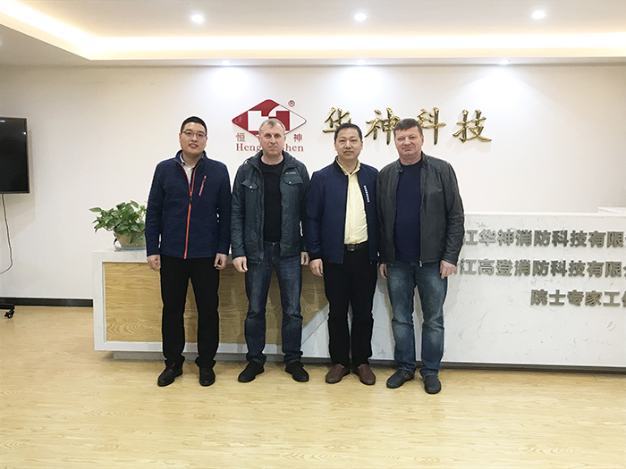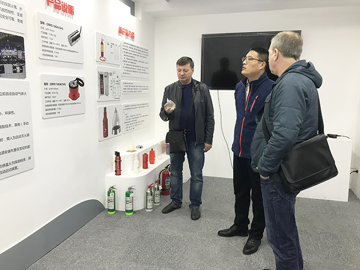 華神消防在不斷開拓和鞏固國內(nèi)市場的基礎(chǔ)上,積極拓展海外市場。2018年3月12日,來自烏克蘭的三位客戶來到我公司進(jìn)行參觀考察??腿嗽?/span>副總周斌和銷售經(jīng)理陪同下,參觀了華神消防展廳,并現(xiàn)場觀看了熱氣溶膠防護(hù)裝置的繞障及復(fù)燃實(shí)驗(yàn),國外客戶在全方位了解公司的規(guī)模實(shí)力、研發(fā)實(shí)力及詳細(xì)的產(chǎn)品介紹后,高度贊揚(yáng)了華神氣溶膠類產(chǎn)品和新產(chǎn)品逃生瓶的可靠性及質(zhì)量等,對華神的產(chǎn)品產(chǎn)生較大的興趣并期望與公司長期合作。