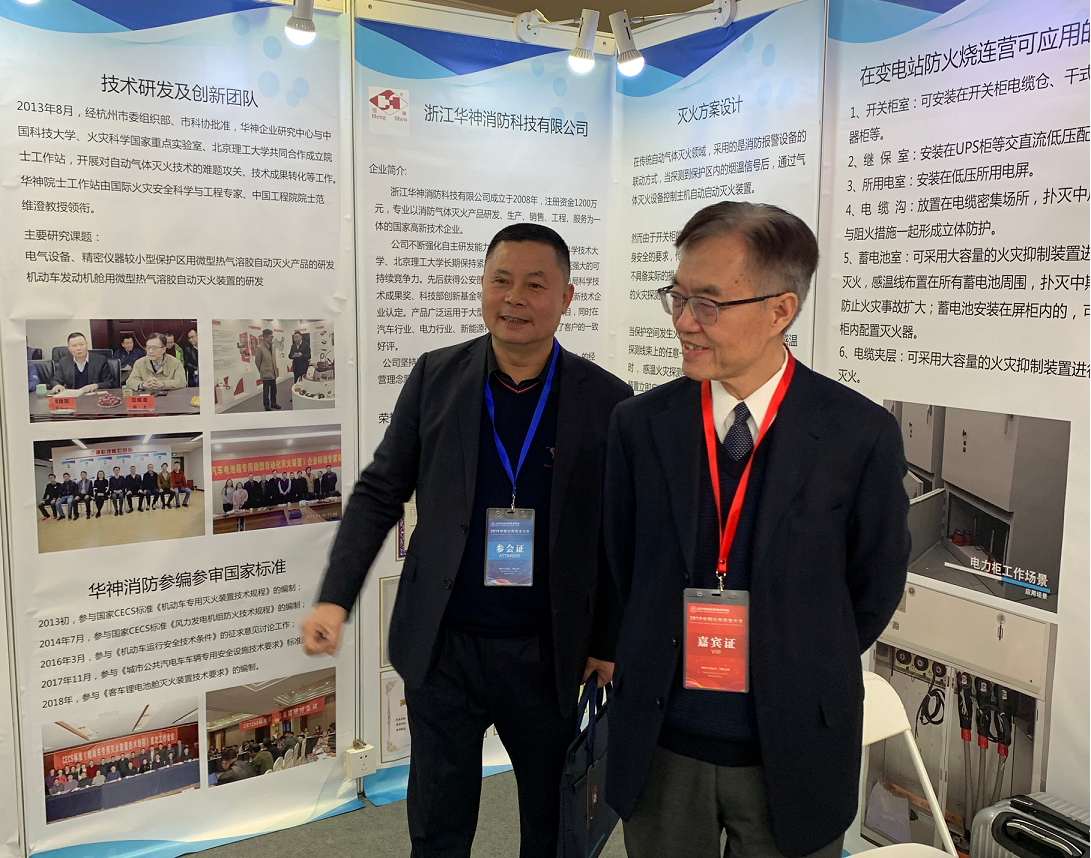 此次大會學術委員會主席、中國工程院院士、清華大學公共安全研究院院長范維澄院士(華神消防院士工作站特邀顧問),參觀了華神消防的展廳,與周建國董事長親切溝通交流了微小空間火災抑制技術、鋰離子電池火災抑制裝置的技術研發(fā)及推廣現(xiàn)狀,指出當下各類火災事故頻發(fā),公共安全形勢仍然十分嚴峻、不容松懈,華神消防專攻于火災預警、抑制、滅火技術的研發(fā)生產(chǎn)推廣,在消防安全上要承擔起領頭羊的作用,消防安全任重道遠,需時刻牢記保護人民財產(chǎn)安全的神圣使命,為消防安全做出貢獻。