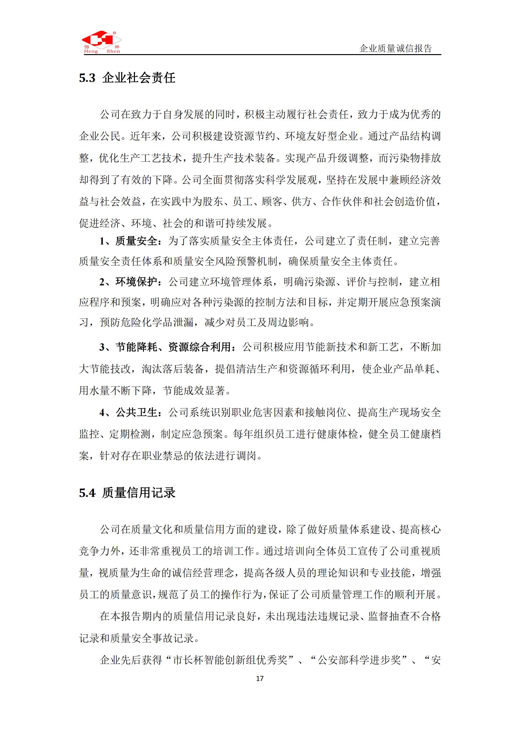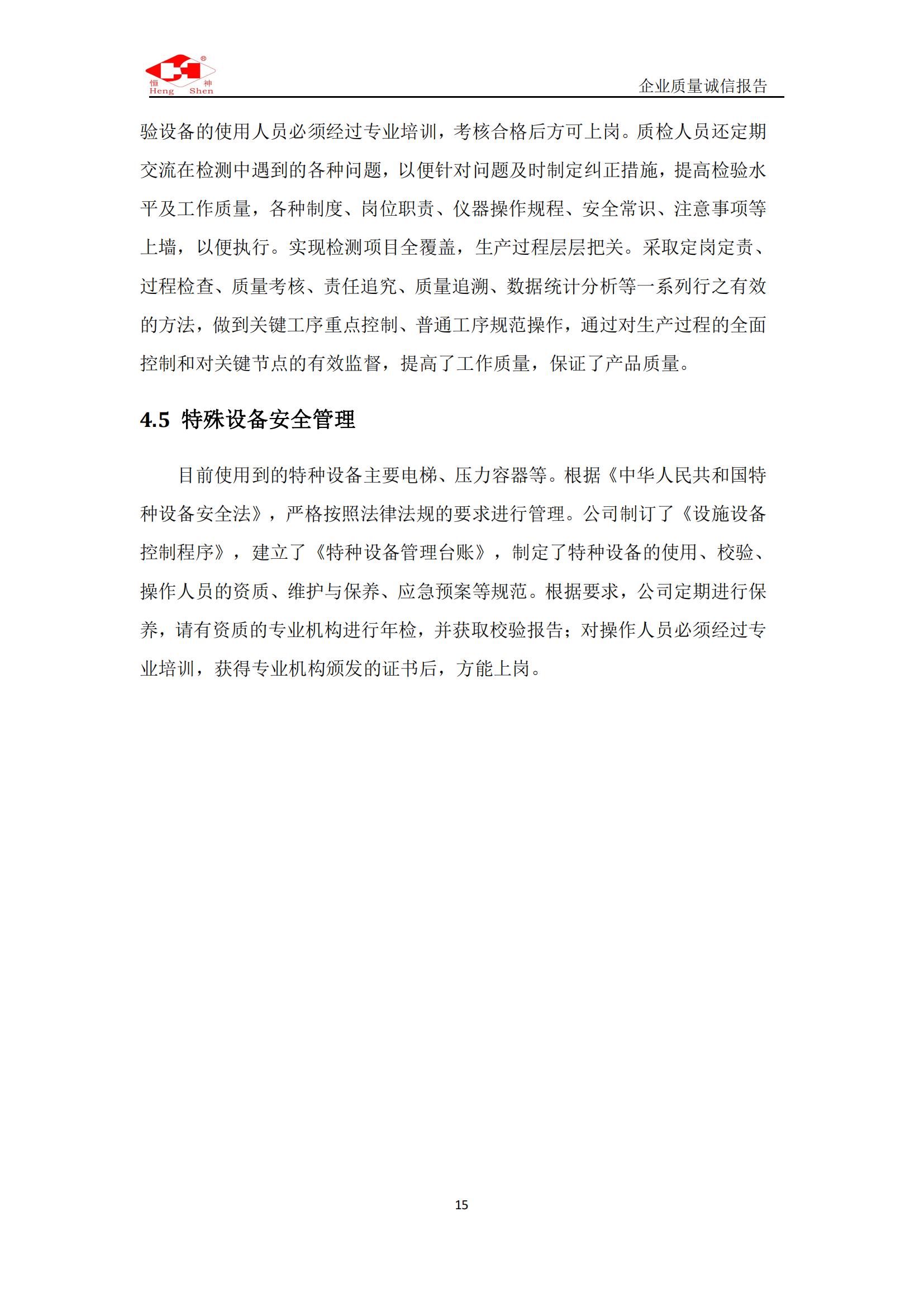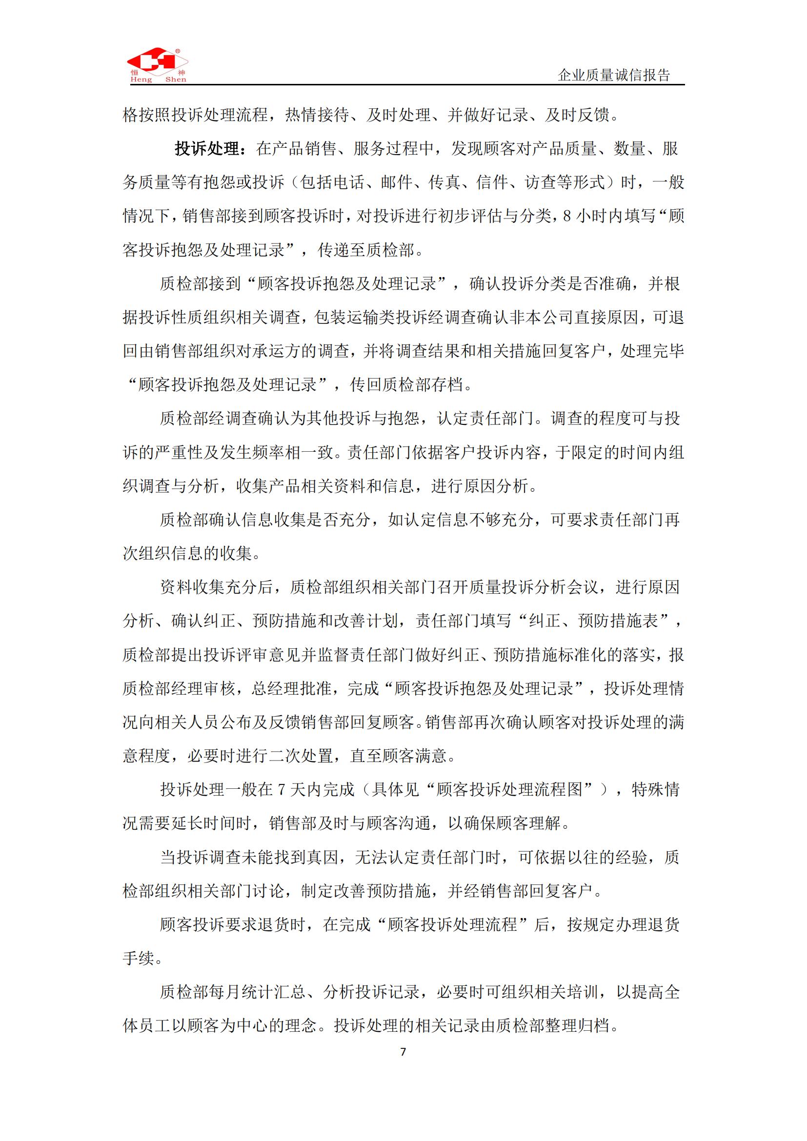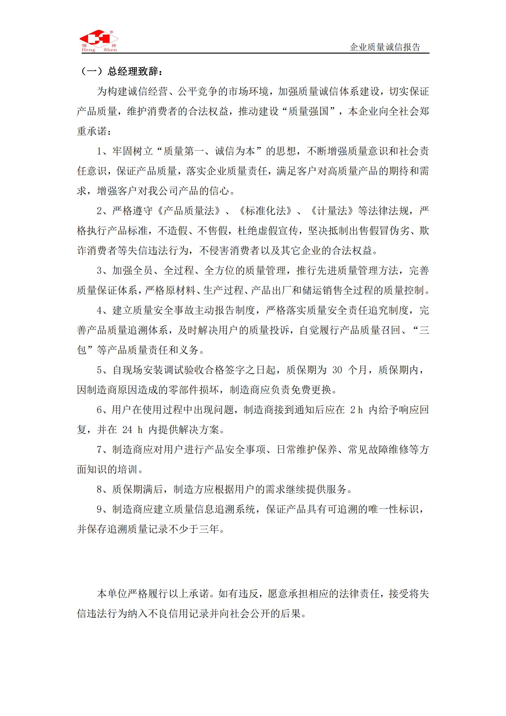 質(zhì)量誠信報告