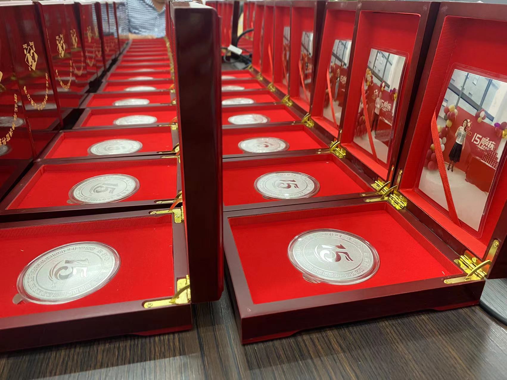 慶祝華神成立15周年的同時(shí)董事長周建國、總經(jīng)理周斌和副總經(jīng)理周曉蓉為每位員工頒發(fā)了華神十五周年紀(jì)念幣,鼓勵(lì)大家繼續(xù)團(tuán)結(jié)、勤奮、敬業(yè)、忠誠、熱情和智慧,譜寫下一個(gè)十五年的歲月華章。